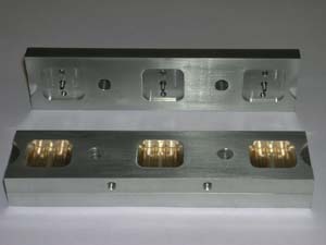 Form aus Aluminium harteloxiert und Messing