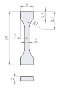 Definierte Probenform für Zugversuch (Querschnitt 2mm x 2mm)